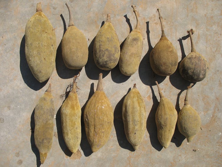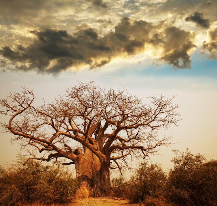 Baobab trees are not only useful to humans, they are key ecosystem elements in the dry African savannas. Importantly, baobab trees keep soil conditions humid, favour nutrient recycling and avoid soil erosion. They also act as an important source of food, water and shelter for a wide range of animals, including birds, lizards, monkeys and even elephants – which can eat their bark to provide some moisture when there is no water nearby. The flowers are pollinated by bats, which travel long distances to feed on their nectar. Numerous insects also live on the baobab tree.